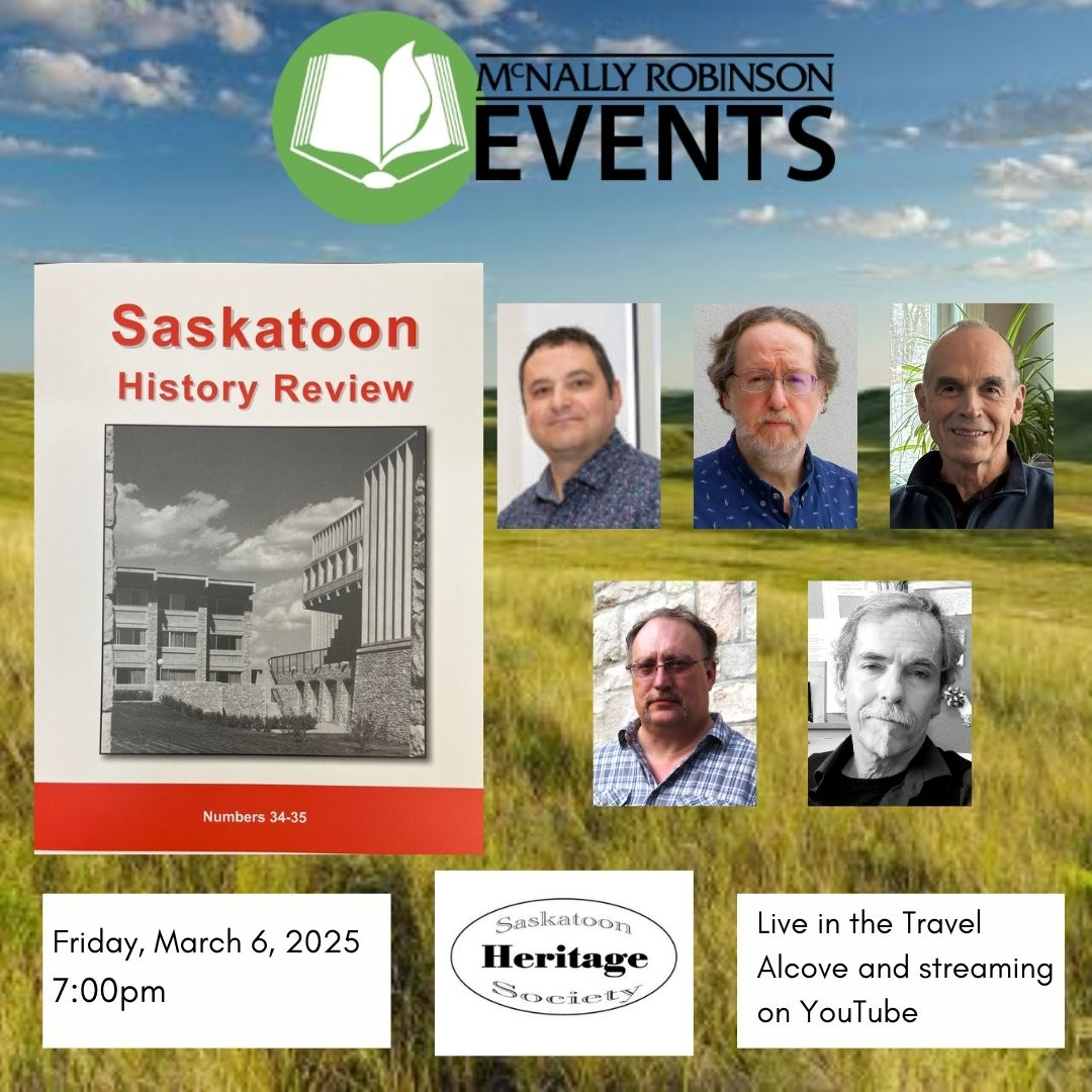 Join us for the launch of the Saskatoon Heritage Society’s latest issue of the Saskatoon History Review, Issues #34-35. This event will be held in the travel alcove and as a simultaneous YouTube livestream. Link: here.